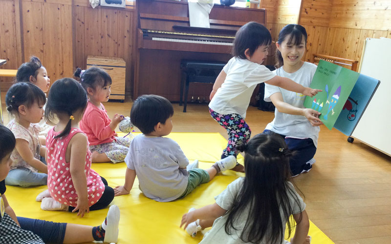 | 指導内容 | 体育・音楽・言語・絵画他、幼稚園生活に準じる活動(お母さんと一緒に行います)。集団に慣れる・自立心を養う・幼稚園に慣れる。 |